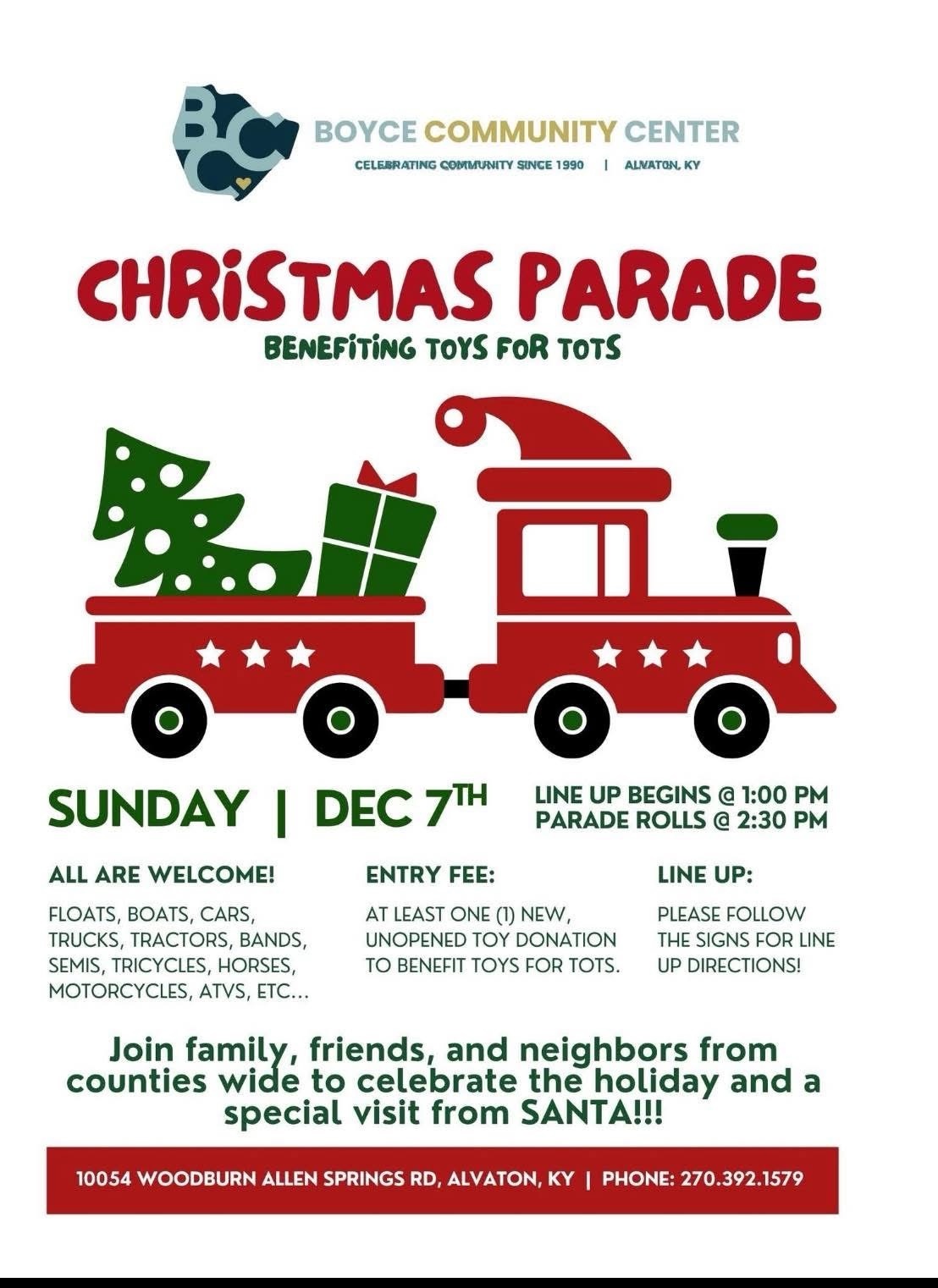 Corvettes, Floats, Boats, Cars, Trucks, Tractors, Bands, Semis, Tricycles, Horses, Motorcycles, Atv, Etc.